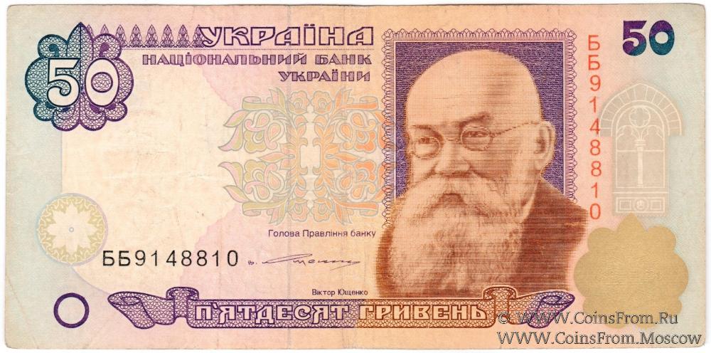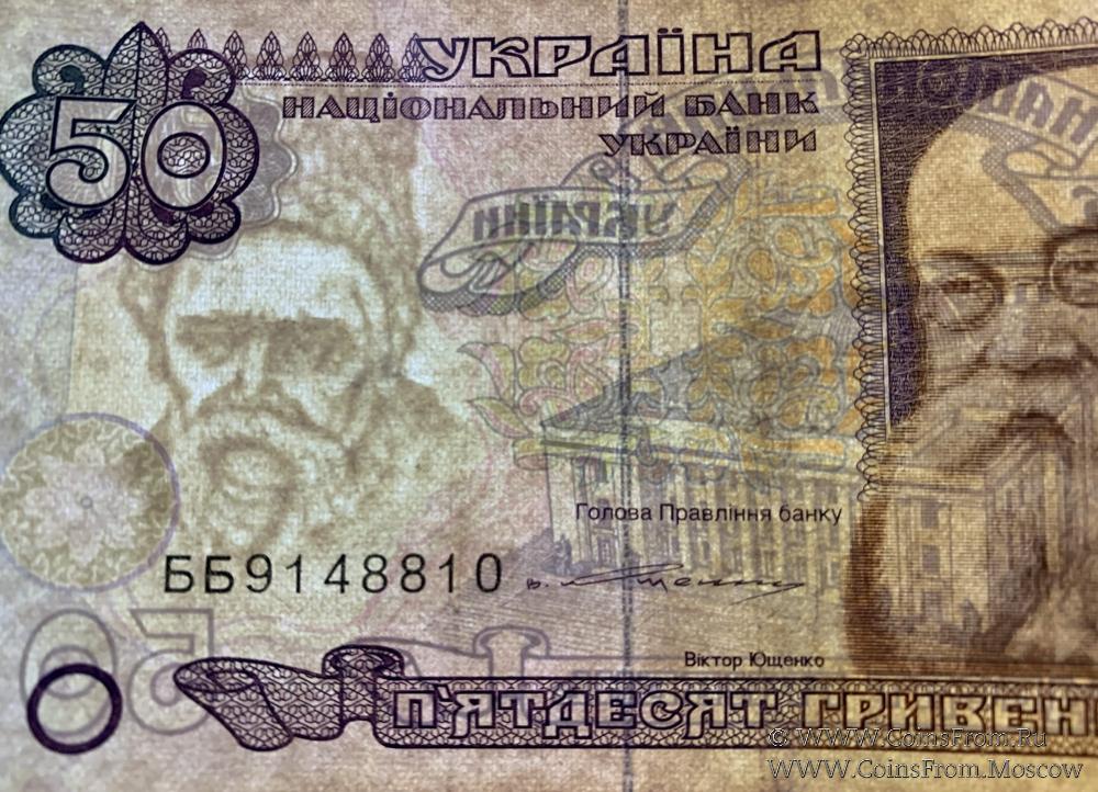 Выпуск 1994-2001 гг. Без даты (1996 г.). БРАК: напечатана на бумаге с водяным знаком от 100 гривен 1996 г. Подпись - Ющенко. Национальный Банк Украины (Національний банк України).