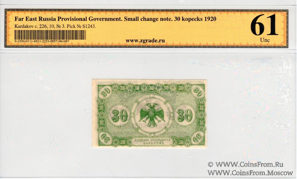 Временное Правительство Дальнего Востока. Государственный Банк. Разменный знак 1920 г. В слабе ZG.
