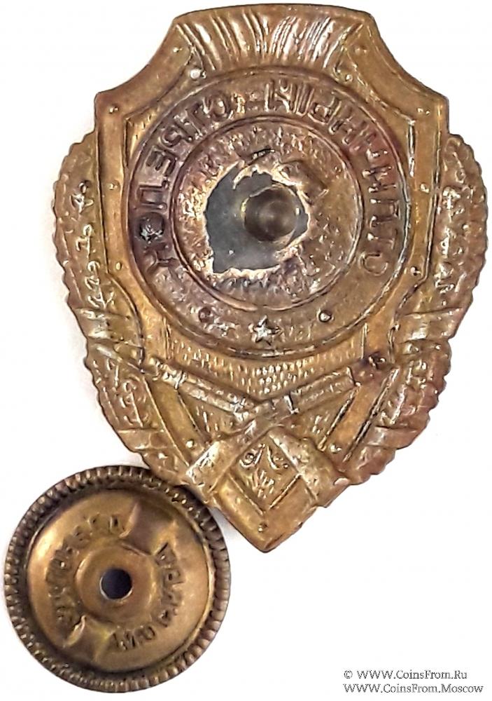 Материал: томпак, эмаль, винт. клеймо на закрутке Завод Победа. Размер 46Х36 мм.