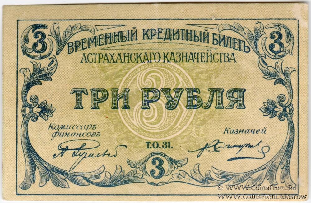 Временный кредитный билет. Серия Т.О.31. Астраханское Казначейство. Типография "Экспедиция Заготовления Краевых Знаков" (бывшая типография Дементьева).