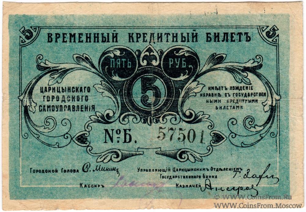 Временный Кредитный Билет без даты (1918 г.). Серия Б. Царицынское Городское Самоуправление.