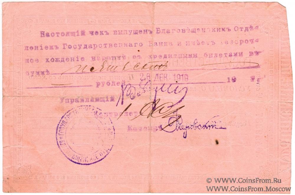 Чек 1919 г. С водяным знаком. Благовещенское Отделение Государственного Банка.