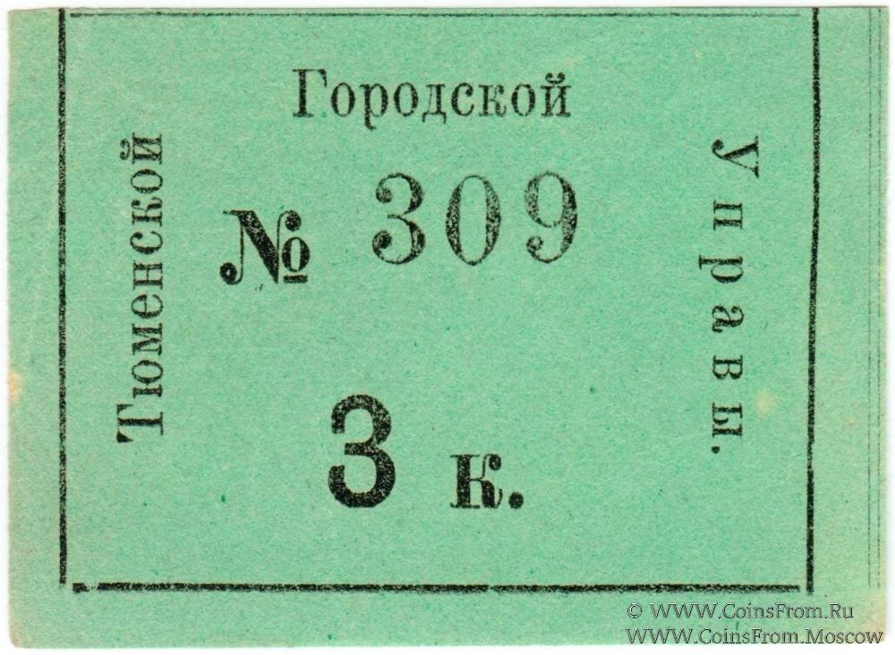 Без даты (1918 г.). Цифры номинала прямые. Тюменская Городская Управа.