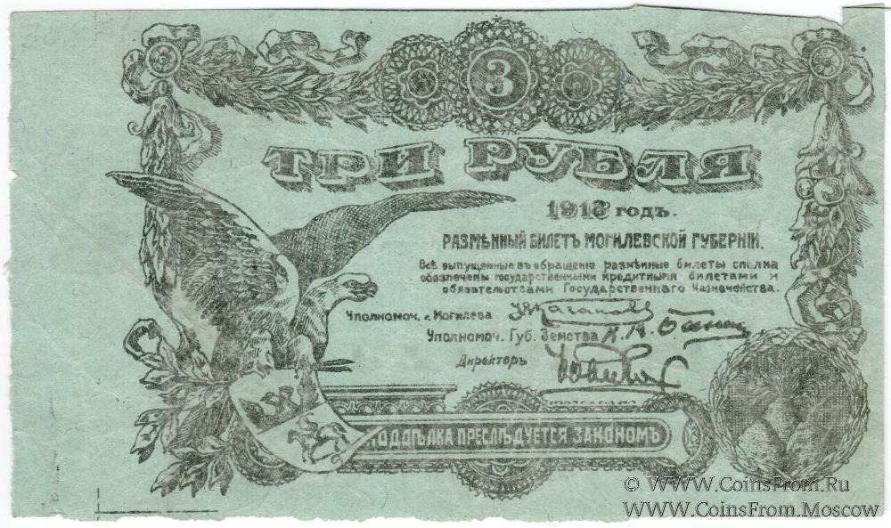 Разменный билет Могилевской губернии 1918 г. БРАК: реверс перевернут к аверсу на 180 градусов. Без номера. Губернская управа.
