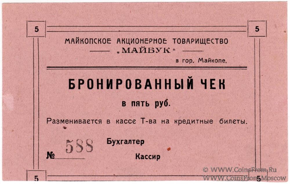 Бронированный чек без даты. Бланк. АКЦИОНЕРНОЕ ТОВАРИЩЕСТВО "МАЙБУК".