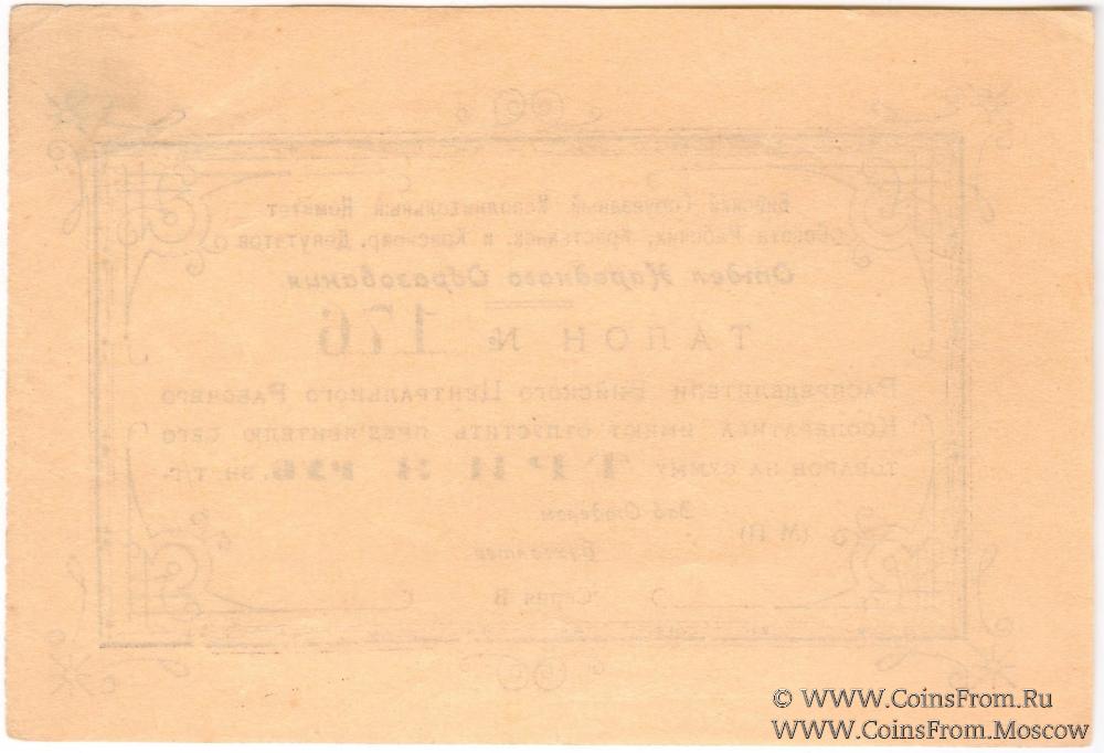 Талон без даты. Бланк. Отдел Народного Образования. Бийский Горуездный Исполнительный Комитет Совета Рабочих, Крестьянских и Крсноармейских Депутатов.