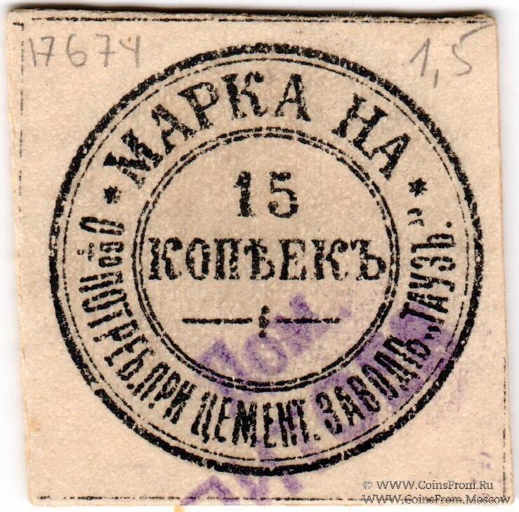 Марка без даты. Законченная. Общество потребителей при цементном заводе "ТАУЗ".