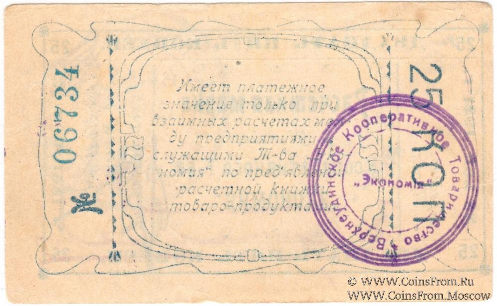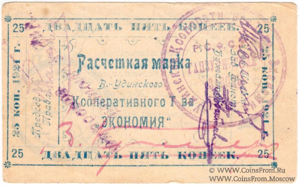 Круглая печать на реверсе: "Верхнеудинское Кооперативное товарищество (по кругу) / "Экономия" (по центру)".