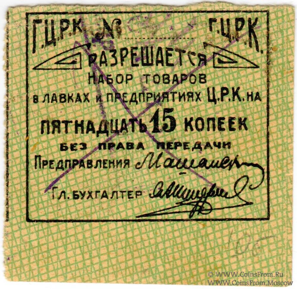 Без названия, без даты. Желто-зеленый. Гомельский Центральный рабочий кооператив (Г.Ц.Р.К.).