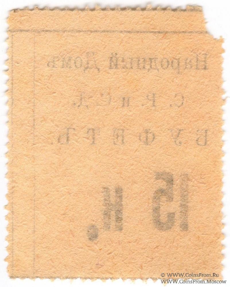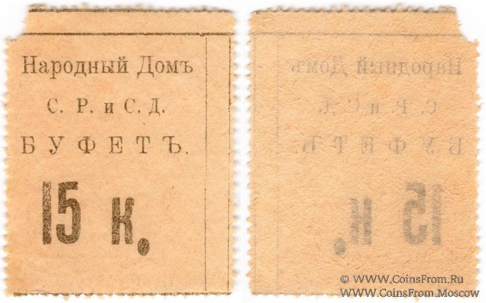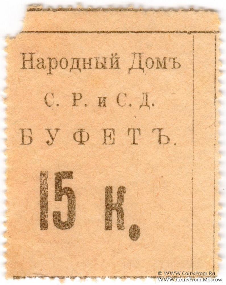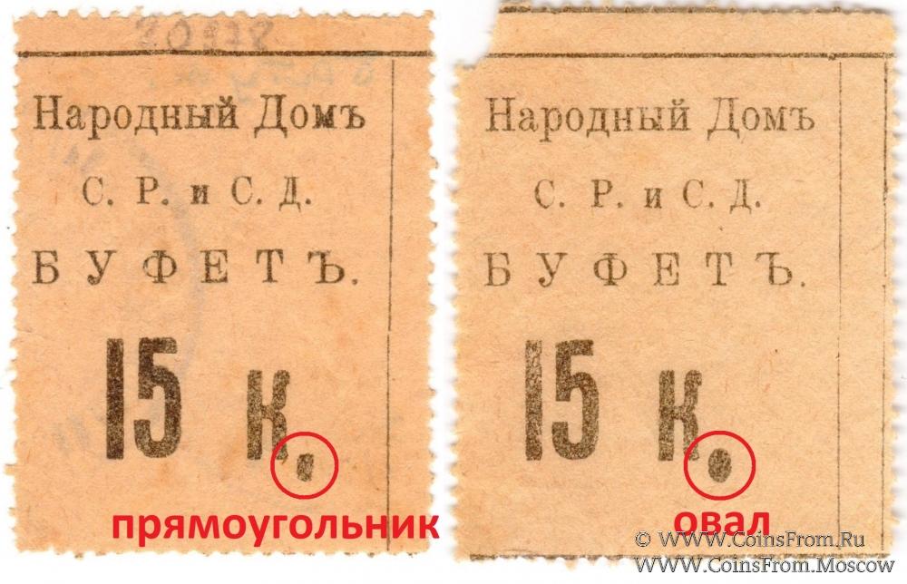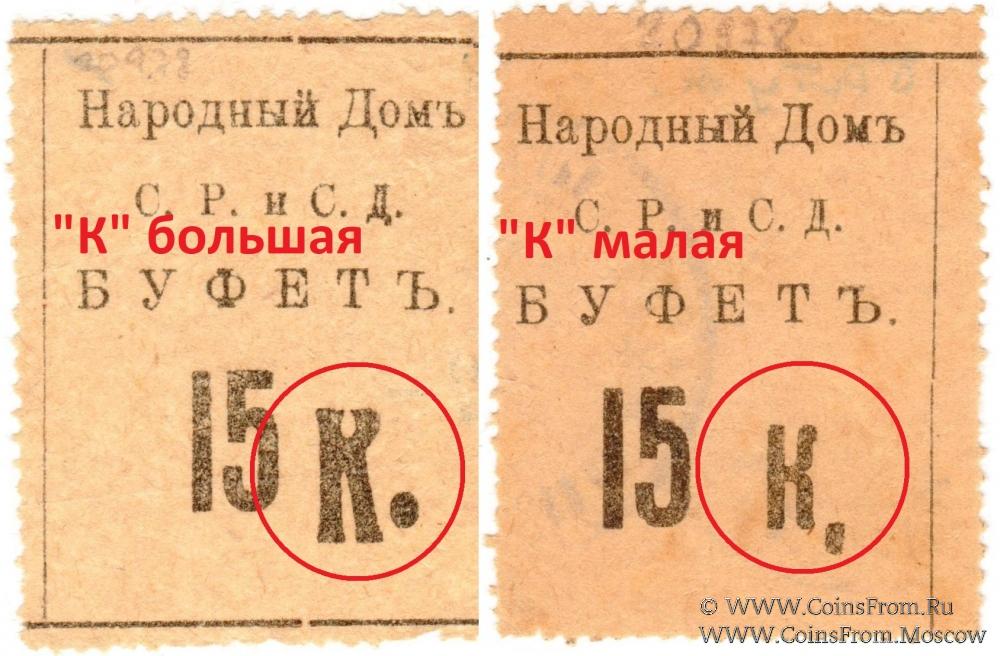 Буква "К" малая, точка после "К" - овальная. С печатями на реверсе. Народный Дом Совета Рабочих и Солдатских Депутатов (С.Р.и С.Д.). Буфет.