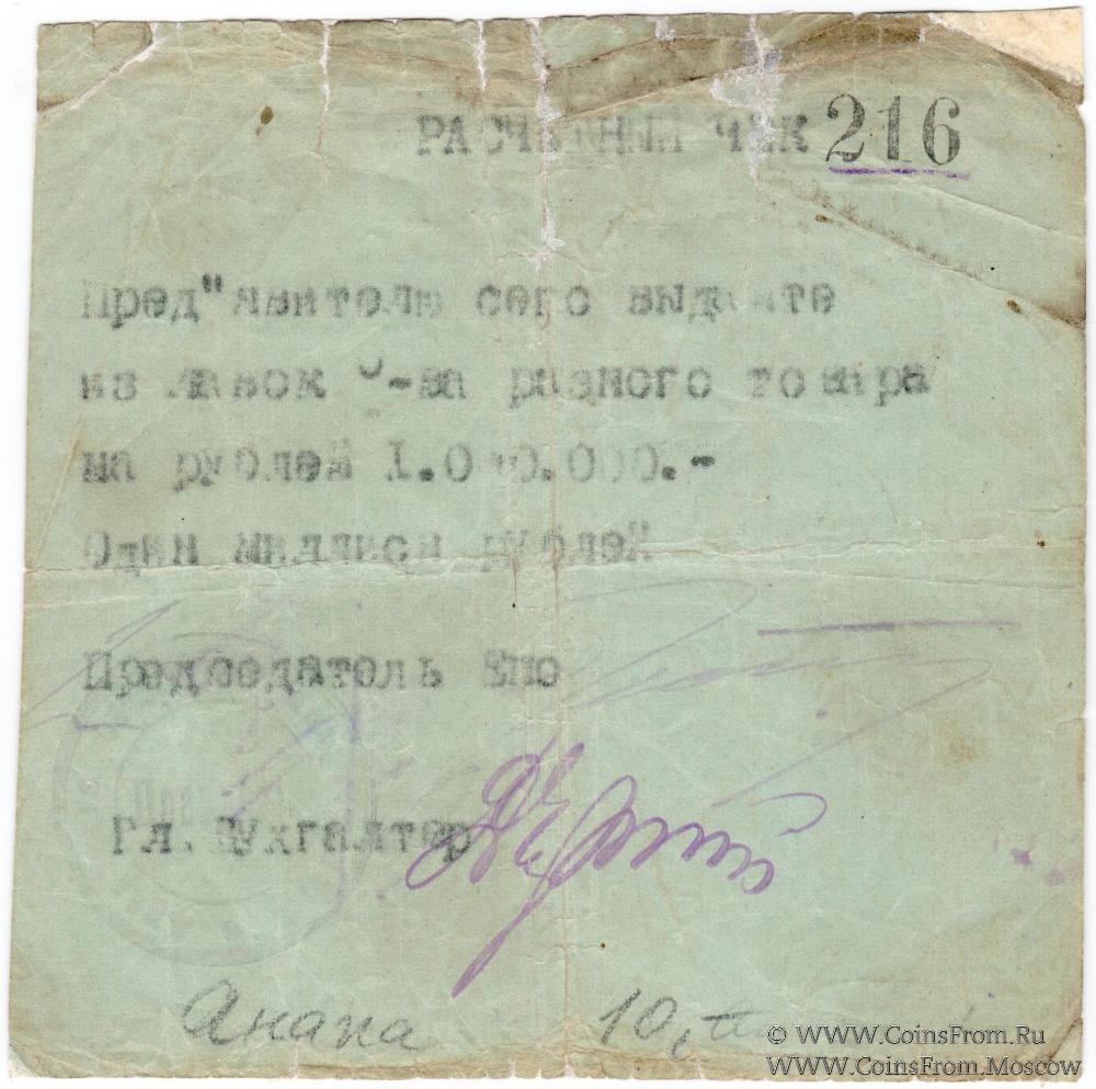 Расчетной чек без даты. С печатью Правления. Потребительское общество.