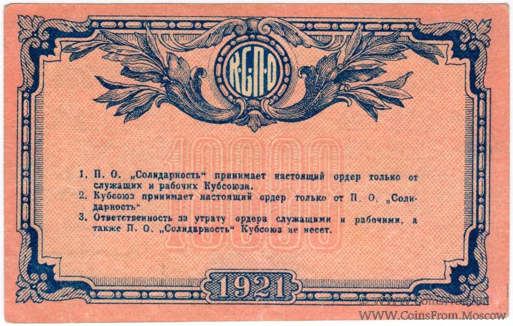 Ордер. Серия В. Подписи ответственных лиц. Потребительское Объединение "СОЛИДАРНОСТЬ". Кубанский Союз Потребительских Обществ (КСПО). Кубсоюз.
