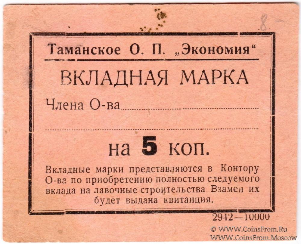 Вкладная марка без даты. Бланк. Таманское Общество Потребителей "Экономия".