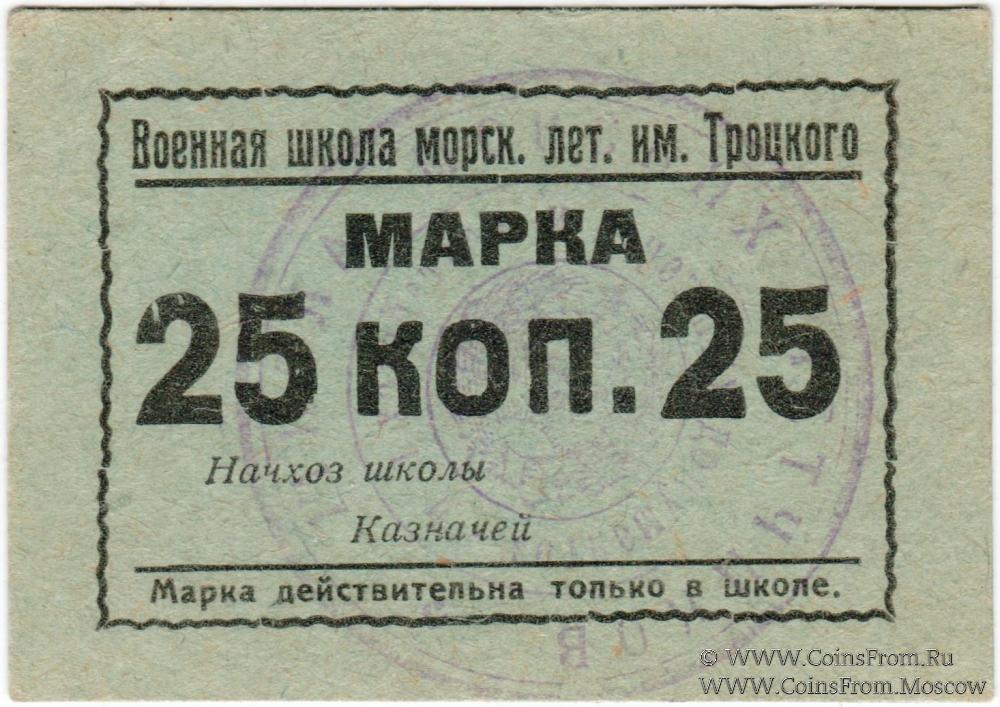 Печать коруглая: Герб СССР (по центру) / "ШКОЛА МОРСКИХ ЛЕТЧИКОВ *" (по большому кругу) / "для хозяйствен. и денежных документов *" (по малому кругу).