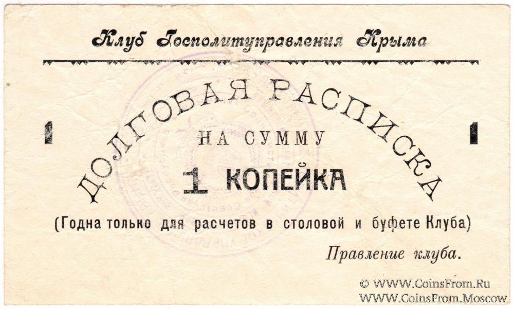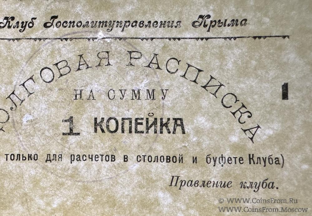 Долговая расписка без даты. Второй выпуск. Белая бумага. Клуб Госполитуправления Крыма.