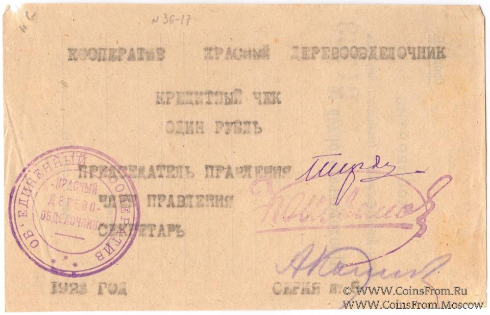 Печать: "ОБЪЕДИНЕННЫЙ КООПЕРАТИВ *" (по кругу) / "КРАСНЫЙ ДЕРЕВО- ОБДЕЛОЧНИК" (по центру, в три строки).