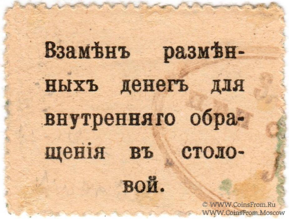 Расчетная марка без даты (1918 г.). Овальная печать на реверсе. Столовая Служащих Центросоюза.