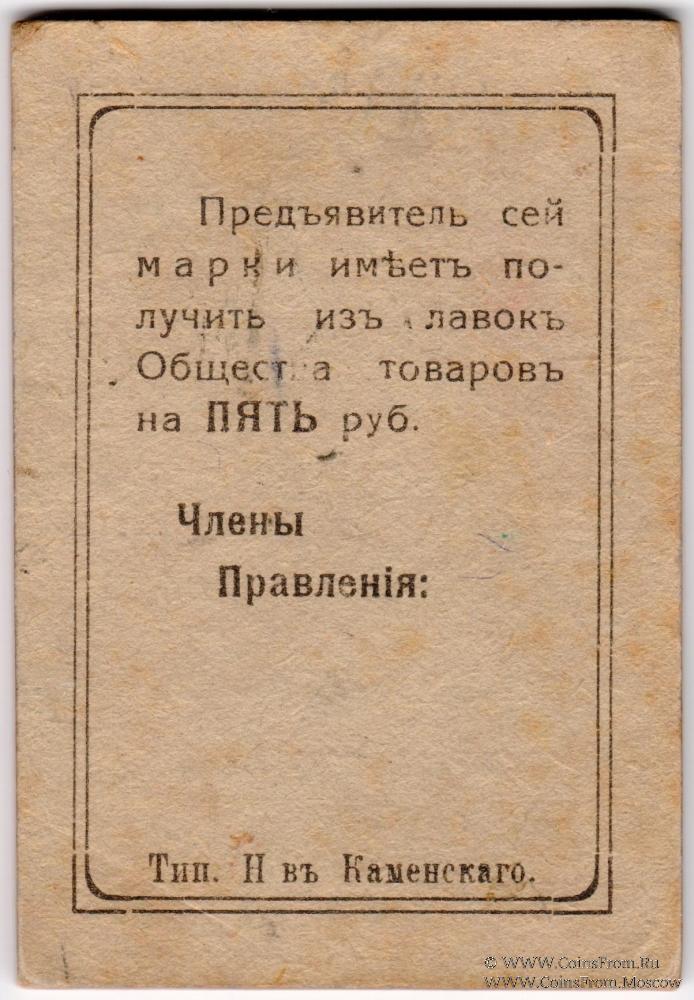 Марка. Толстый картон. Первое Кизеловское Общество Потребителей.