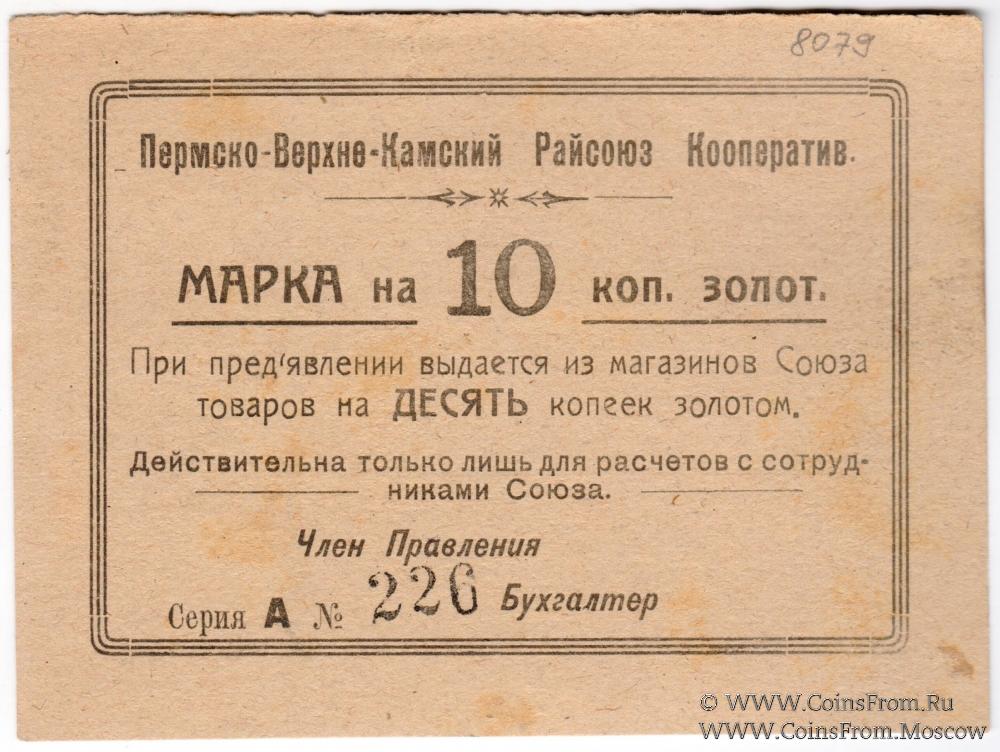 Марка без даты (1923 г.) в рублях золотом. Серия А. Пермско-Верхне-Камский Райсоюз Кооперативов.