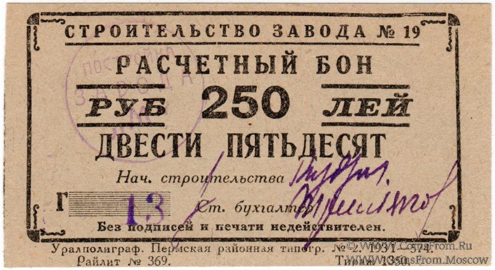 Расчетный бон. Серия Г (бежевые). Законченный. Строительство завода №19. ПЕРМСТРОЙ.