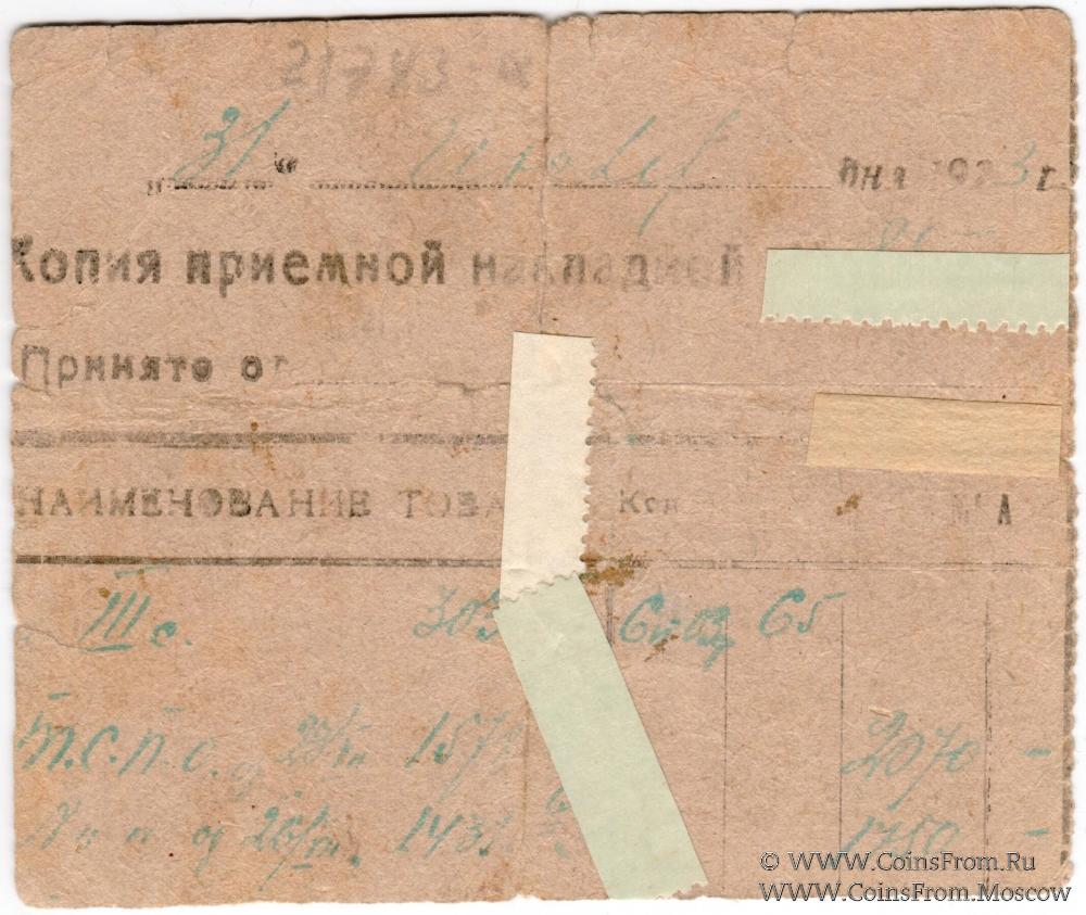 Расписка без даты. Большой формат (6 строк). Вторичное использование (копия приемной накладной). Правление Григориопольского ЕПО.