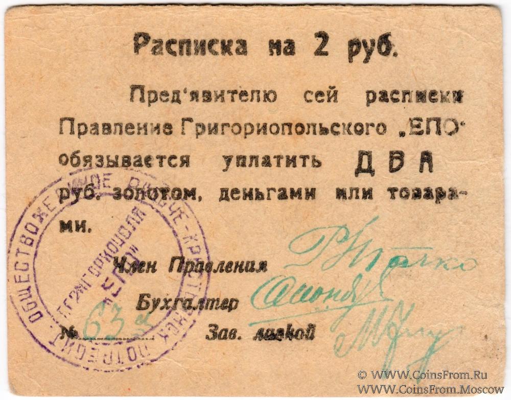 Печать круглая: "Г.ГРИГОРИОПОЛЯ "ЕПО"" (по центру в две строки) / "ЕДИНОЕ РАБОЧЕ-КРЕСТЬЯНСК. ПОТРЕБИТ. ОБЩЕСТВО *" (по кругу).