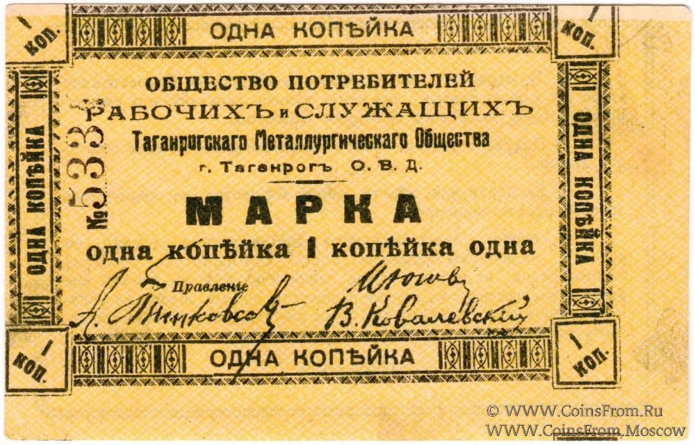 Общество Потребителей рабочих и служащих. Таганрогское Металлургическое общество.