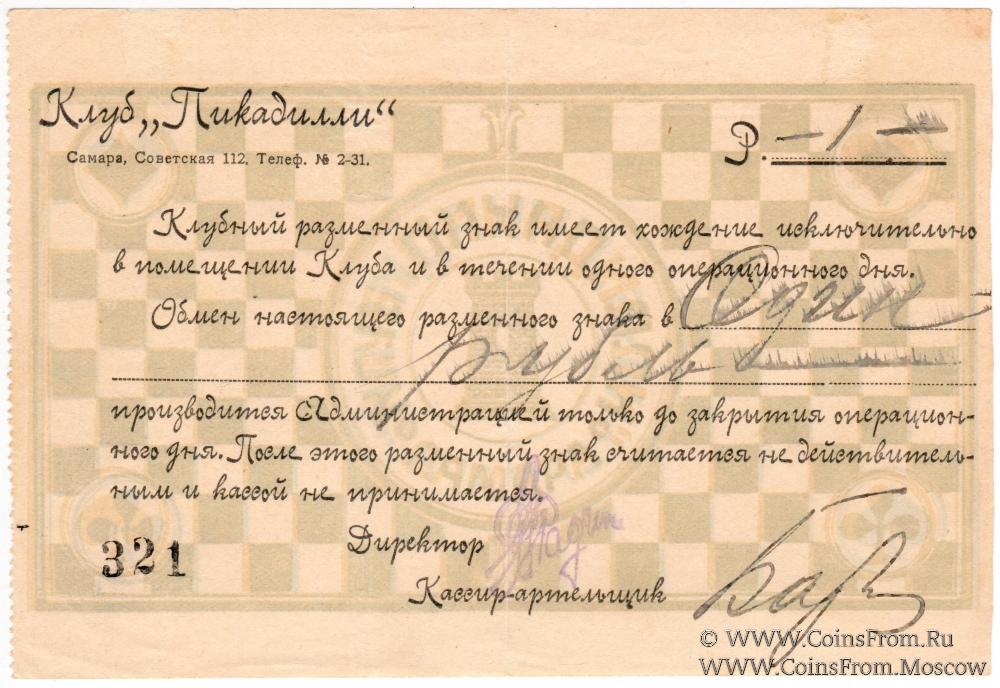Клубный разменный знак без даты. Шахматный клуб "Пикадилли".
