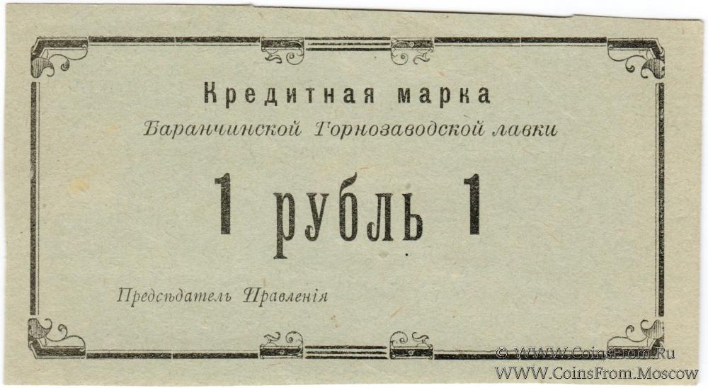 Кредитная марка 1919 г. Серый оттенок бумаги. Буква "У" в слове "рубль" короткая. Баранчинская Горнозаводская лавка.