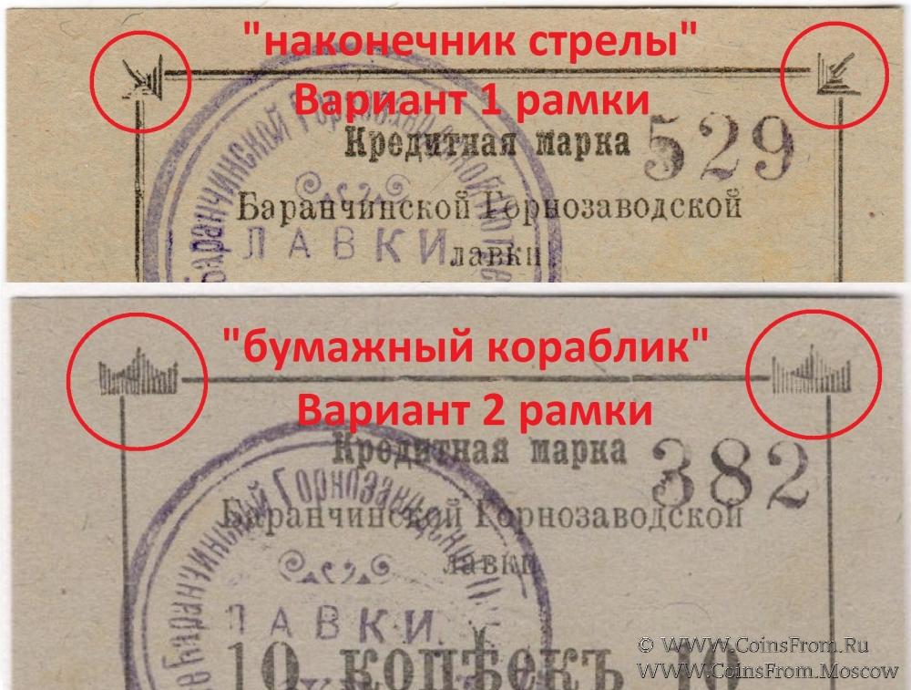 Кредитная марка 1919 г. С номером и оттиском печати. Вариант 2 рамки - "бумажный кораблик". Баранчинская Горнозаводская лавка.