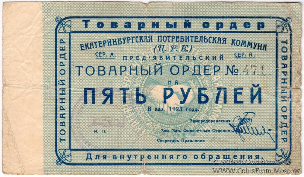5 рублей 1923 г. (Екатеринбург). Серия А.