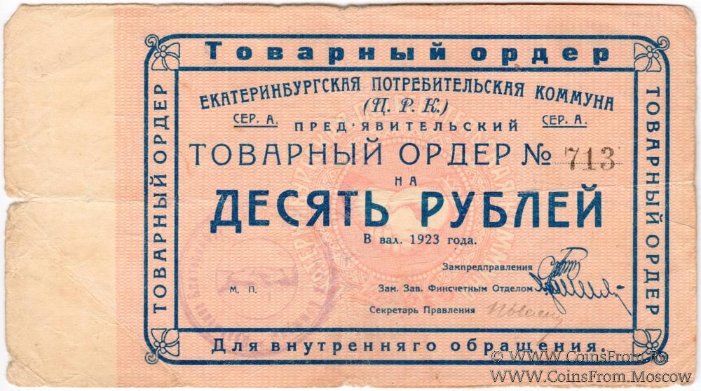 10 рублей 1923 г. (Екатеринбург). Серия А.