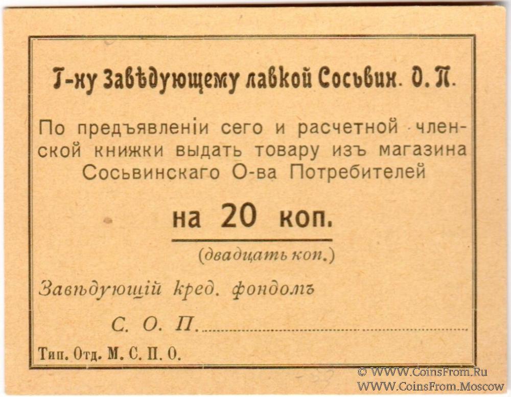 Без названия (По предъявленiи сего). Г-ну Заведующему лавкой Сосьвинского О.П. Сосьвинское Общество потребителей.