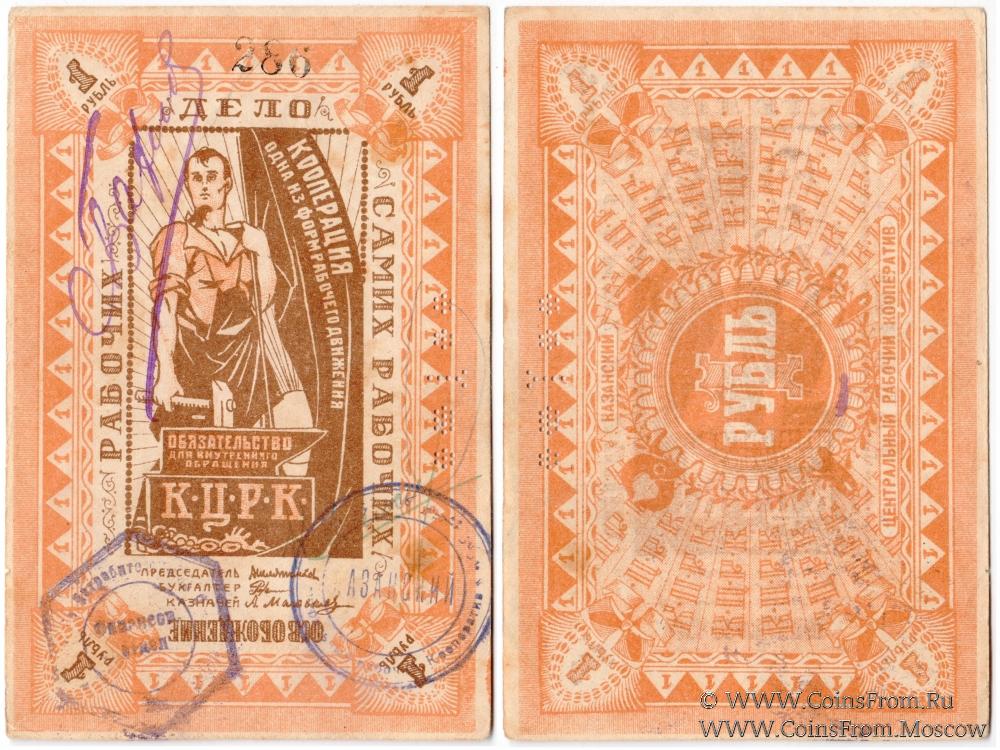 Обязательство для внутреннего обращения с печатью Потребительского общества на обязательствах Казанский Центральный рабочий Кооператив (К.Ц.Р.К.).