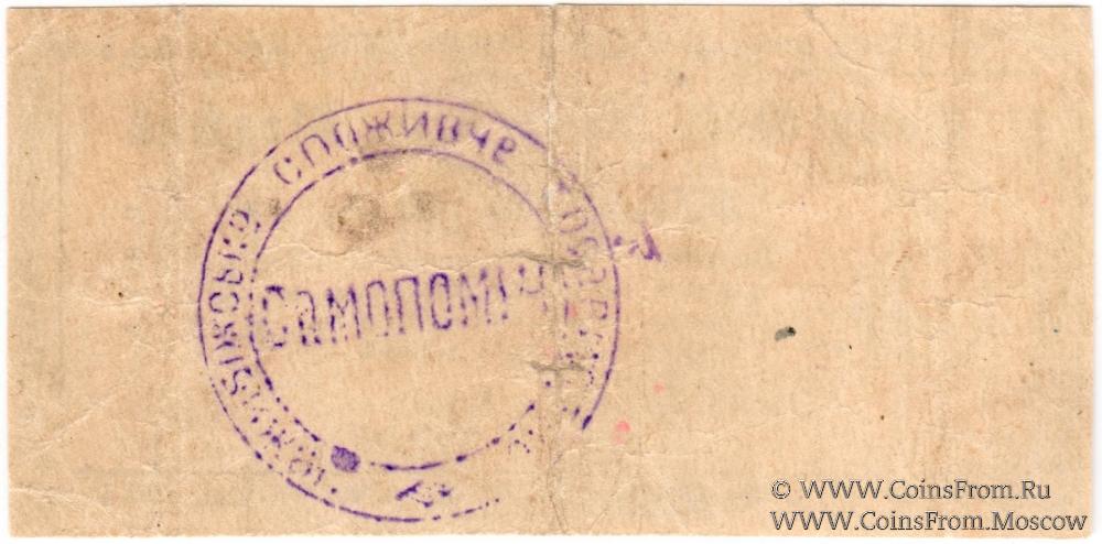 Знак без даты (1923 г.). Вариант 3 рамки. Печать Общества "Самопомощь" на реверсе. Союз Обществ Потребителей Меджибож.