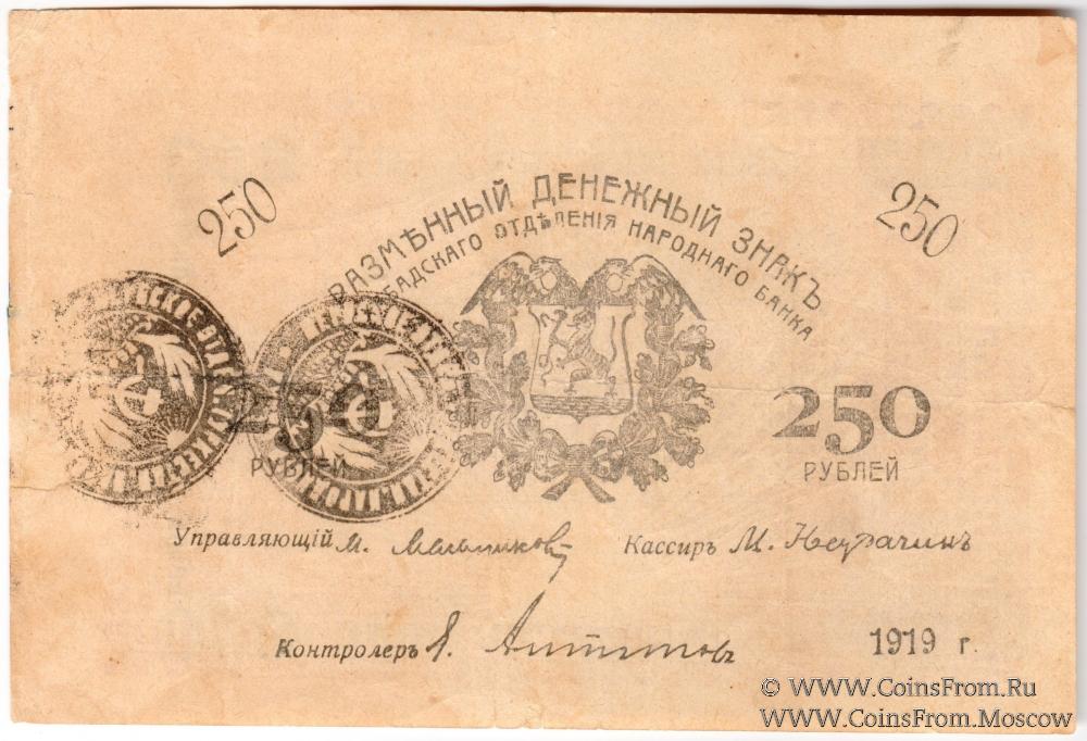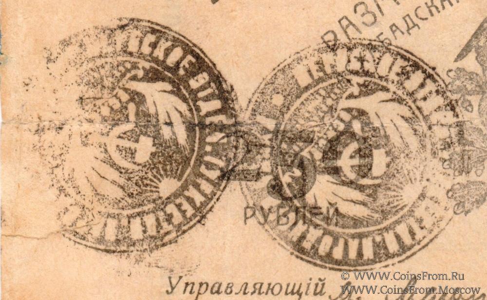 Разменный Денежный Знак 1919 г. Без печати Ашхабадского банка. Две печати (33 мм) чёрного цвета Мервского отделения на аверсе. Мервское Отделение Туркестанского Народного банка (бланк Ашхабадского отделения Народного Банка).