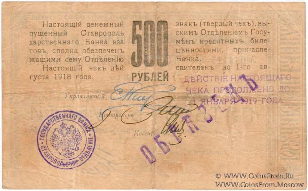 Денежный знак (твердый чек) от 01 марта 1918 г. ОБРАЗЕЦ: штамп на реверсе слова "ОБРАЗЕЦЪ".