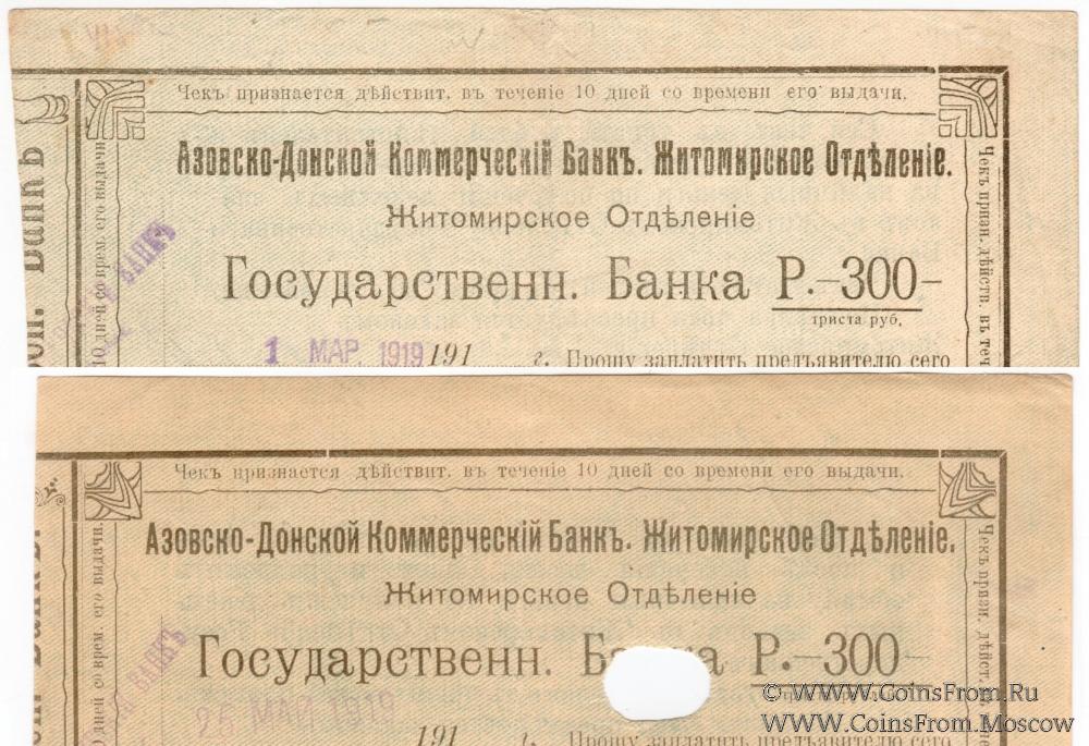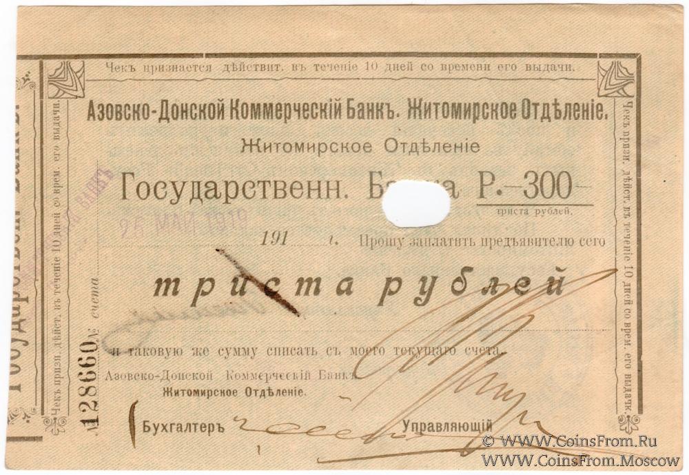 Житомирское отделение. Азовско-Донской коммерческий Банк. Государственный Банк.