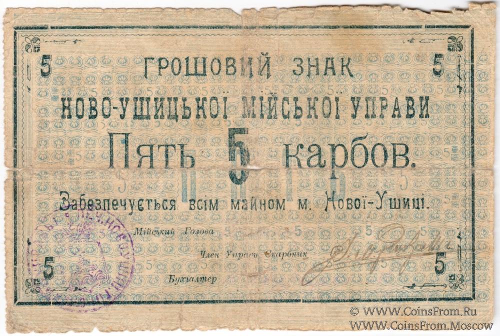 Денежный знак (Грошовій знак) 1919 г. Текст подписей Вариант 2: "Мiйський Голова". Новоушицкая Городская управа.