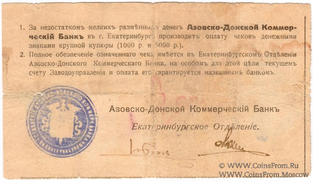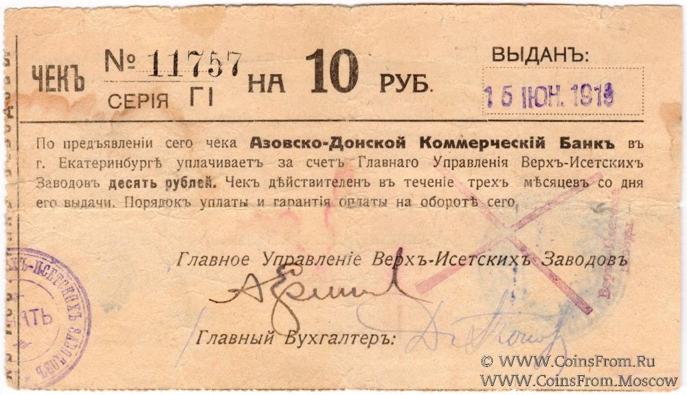 Чек. Серия ГI. Крестообразное гашение. Выдан 15 июня 1919. Азовско-Донской Коммерческий Банк (за счет Главного Управления Верх-Исетских заводов).