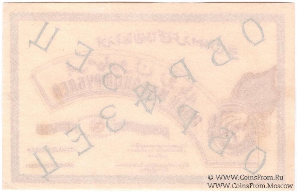 Выпуск 1922 г. ОБРАЗЕЦ (только реверс): надпечатка черного цвета "ОБРАЗЕЦ" крест-накрест. Без водяного знака.