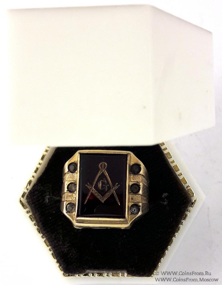 Перстень жёлтого металла с 1 большим и 6 малыми крвсеыми камнями