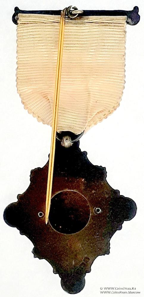 АВЕРС: в виде ромба, образованного белой лентой, с наименованием благотворительного заведения и даты 1920. В центре малый герб в виде щита с символикой, двумя клейнодами сверху и девизом на латыни на синей ленте снизу: Nil Actum si Quid Agendum.