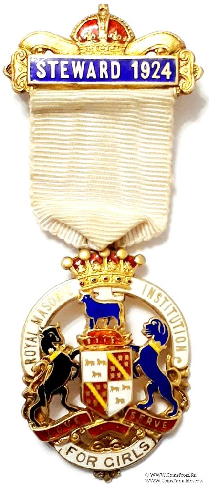 КОЛОДКИ/МЕДАЛЬОН: верхняя колодка прямоугольная, увенчанная короной, с надписью Steward 1924.