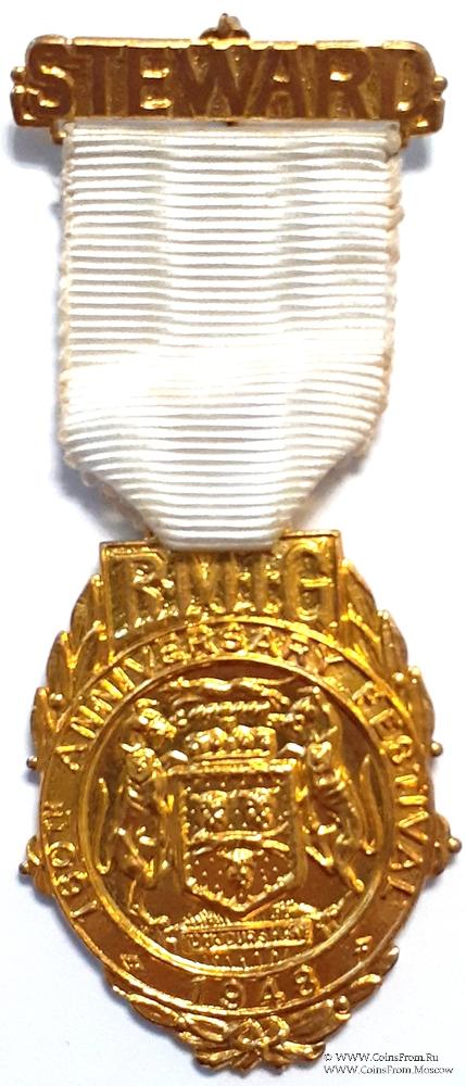 АВЕРС: двойной круг с надписью: 160 Anniversary Festival 1948 (160 юбилейный фестиваль 1948 года). Выше круга аббревиатура благотворительного заведения RMIG. В центре круга герб и наименование провинции.