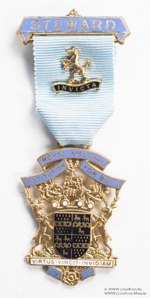 Знак RMIB 1970. STEWARD ROYAL MASONIC INSTITUTION FOR BOYS. – Королевский Масонский институт для мальчиков.