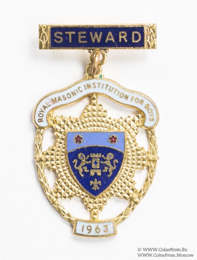 Знак RMIB 1967. STEWARD ROYAL MASONIC INSTITUTION FOR BOYS. – Королевский Масонский институт для мальчиков.
