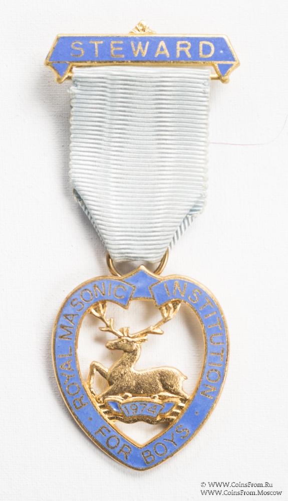 Знак RMIB 1974. STEWARD ROYAL MASONIC INSTITUTION FOR BOYS. – Королевский Масонский институт для мальчиков.