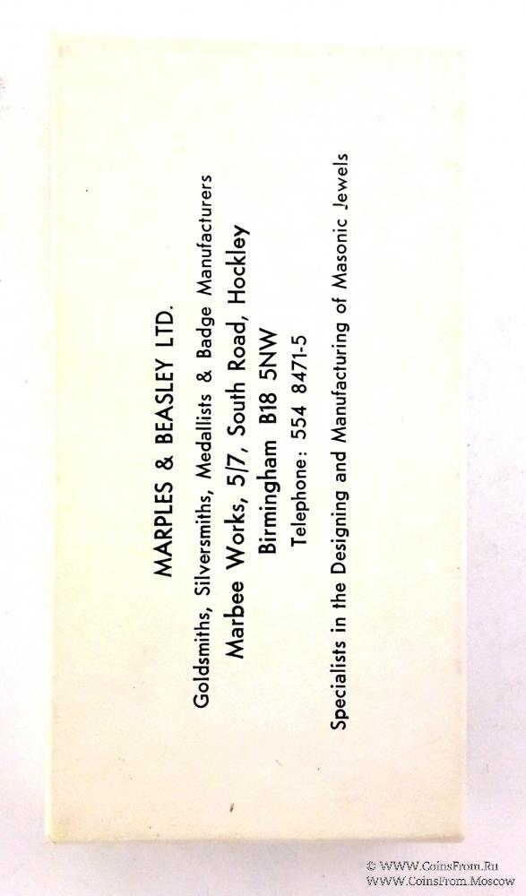Знак круглой формы. На круглой основе расположены два квадрата с вогнутыми сторонами. Один из квадратов в виде ромба синей эмали с наименованием благотворительного заведения ROYAL MASONIC INSTITUTION FOR GIRLS – Королевский Масонский институт для девочек. В центре изображение красного дракона – символа провинции Somerset. Сомерсет Церемониальное и неметропольное графство Англии, расположенное в юго-западной части страны. Лента знака белая. Верхняя колодка в форме короны синей эмали с надписью STEWARD и булавкой для носки с обратной стороны. На ленте дополнительный медальон красного цвета с датой 1973.