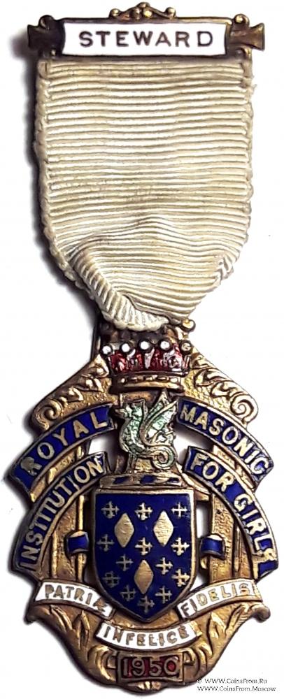 Знак RMIG 1959. STEWARD ROYAL MASONIC INSTITUTION FOR GIRLS – Королевский Масонский институт для девочек.